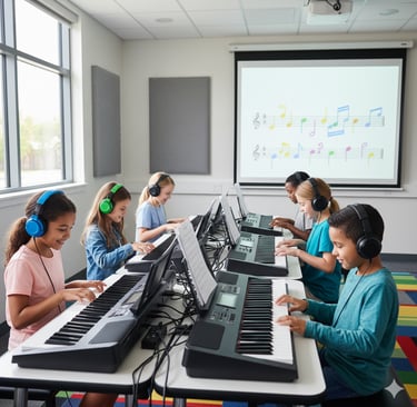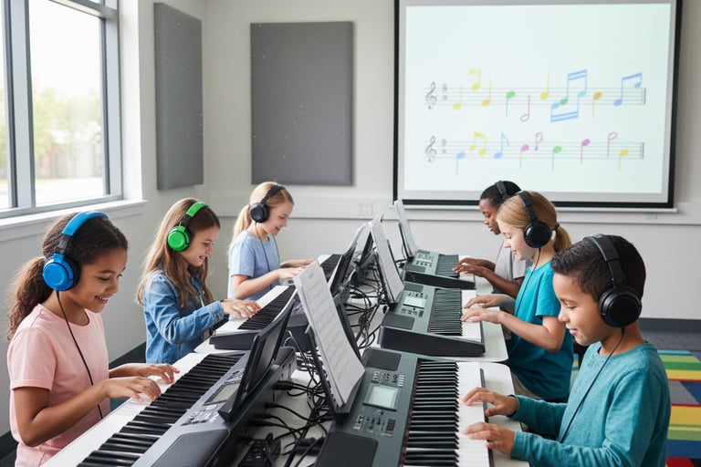 STUDENTS BUY pIANO NOTEBOOK AND MUSIC